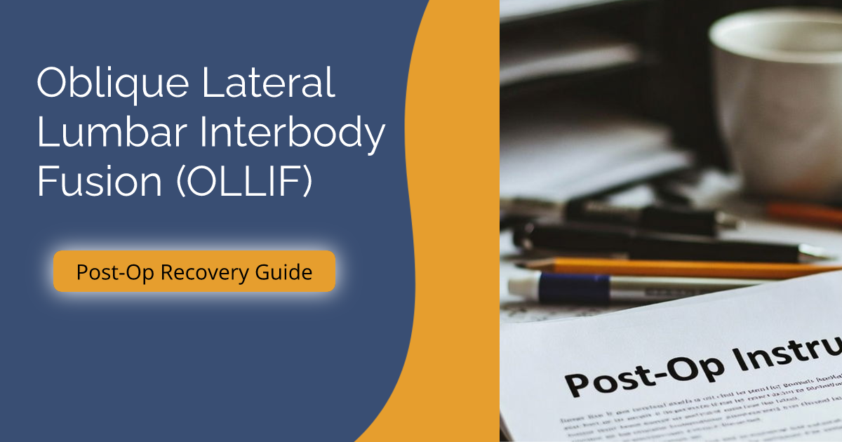 An oblique lateral lumbar interbody fusion (OLLIF) is usually combined with a posterior spinal fusion (PSF). This technique is done minimally invasively with the use of X-ray guidance to treat various conditions that cause back pain and leg pain, numbness, or tingling. A 10 mm incision on the lateral side of the spine is made and soft tissue dilators are used to allow access to the spine. A surgical port is inserted, and surgical instruments are used the remove the disc material. An interbody spacer and bone graft are both placed where the disc was. After this, the instruments are removed, and the wound is closed with stitches underneath the skin. Skin glue and skin tapes are applied to the top of the incision. For many patients, this is an inpatient procedure, meaning you will stay overnight at the hospital and can go home the next day, but sometimes this procedure can be done at a surgery center and the patient can go home the same day.